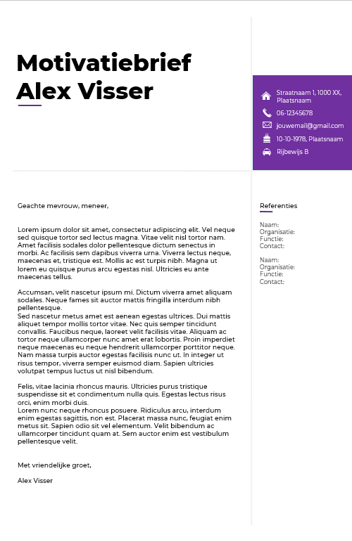 - CV-template 'Alex' is subtiel met kleur maar toch in het oog springend.