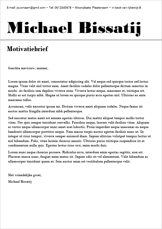 Direct na betaling ontvang je per e-mail een downloadlink waarmee je het cv-template (vaak keuze uit 1 of 2 pagina’s) en het bijbehorende template voor een motivatiebrief kunt downloaden. Daarnaast ontvangt je een handig stappenplan die je helpt om het template in te vullen.